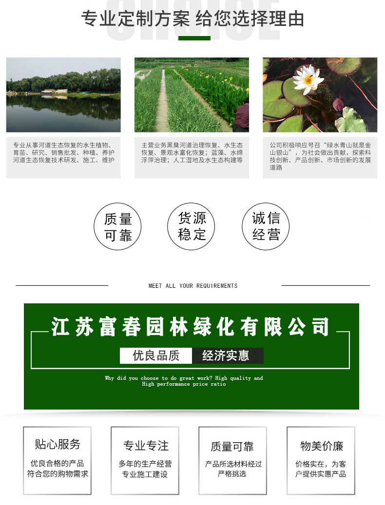 4.可种植植物有月季、玫瑰、栀子花、杜鹃、茶花等,也可种植常绿植物黄杨、女贞类植物,可形成一年四季常绿的水上花园。去除水体中的N、P。陆生植物水上种植后,对水体具有很好的净化作用。