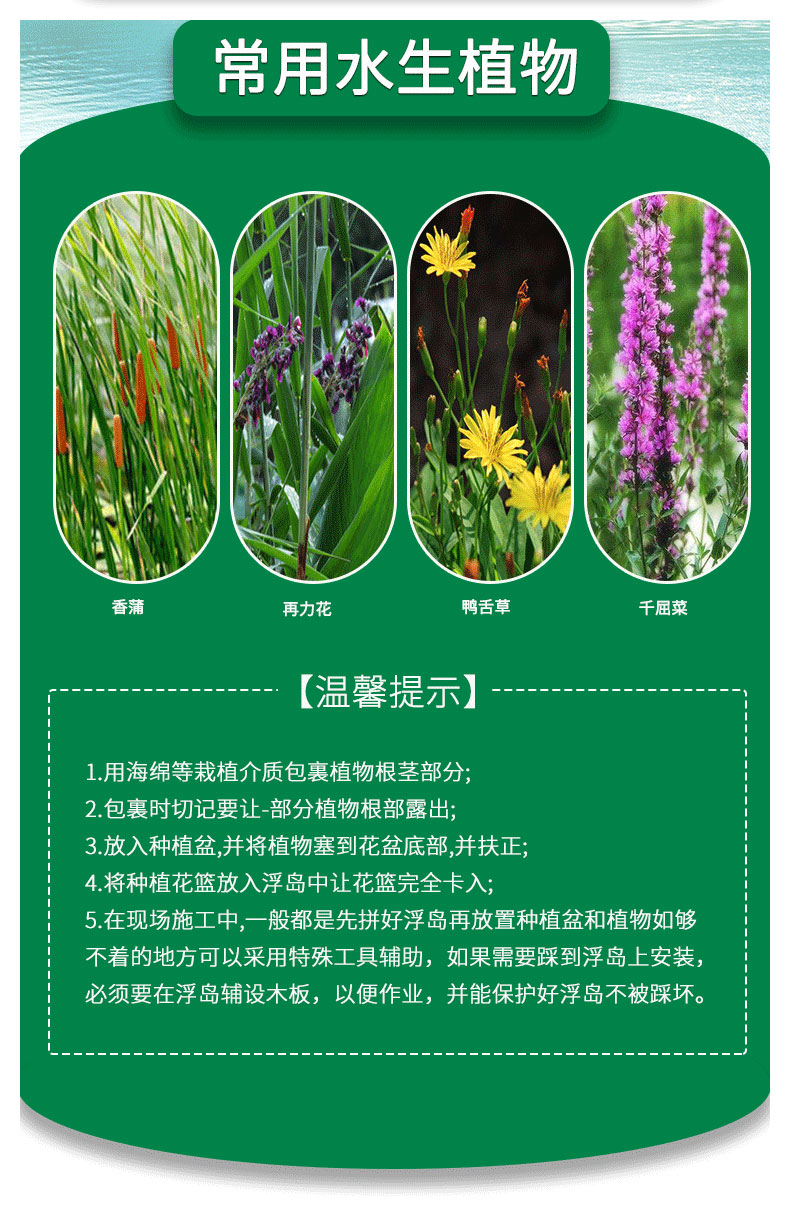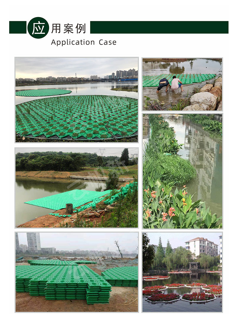3.单元造型美观,可用于水上绿化以及浮水型水生植物的种植需求。适合河道、人工湖、观赏池塘等水域的净水及绿化需求。