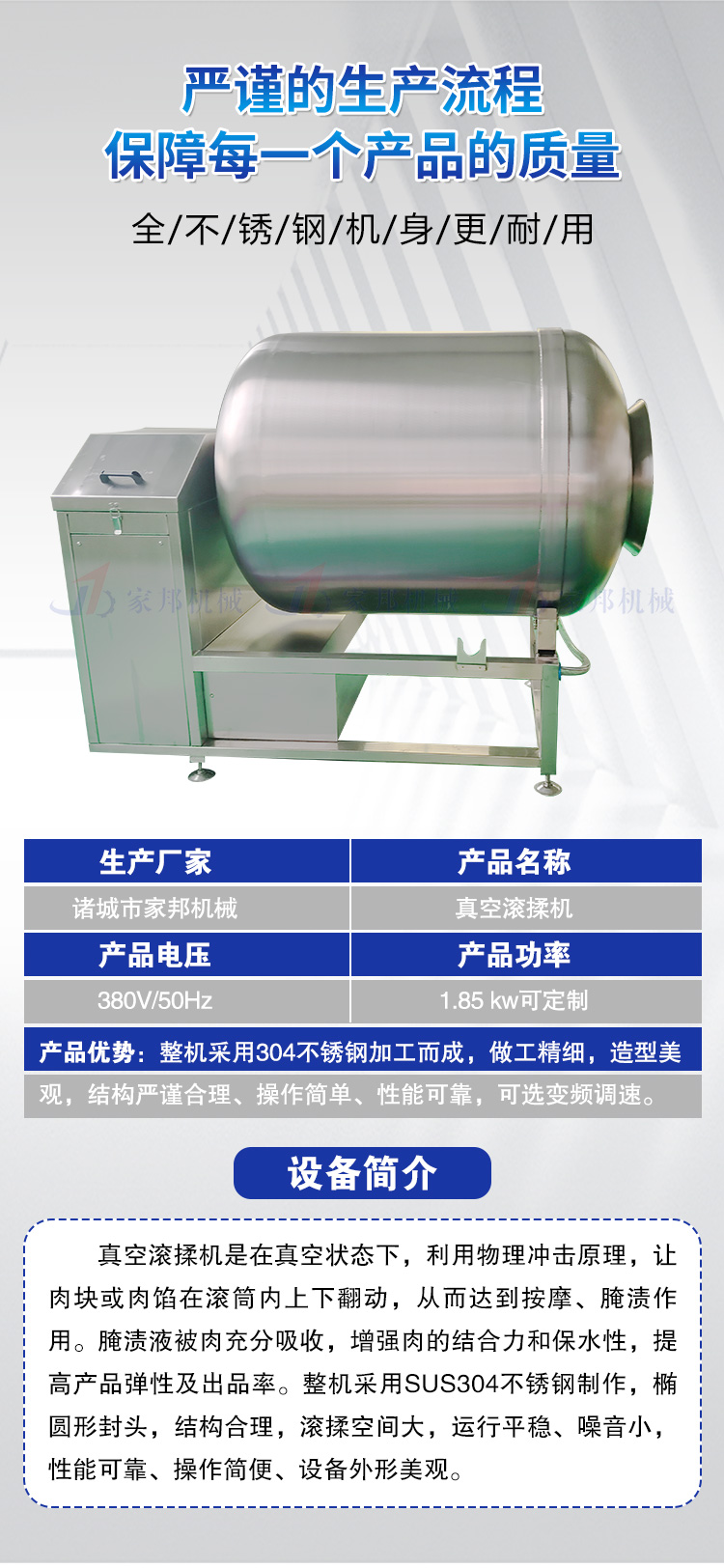 家邦肉类真空滚揉机 牛肉入味腌制设备 肉类滚揉机